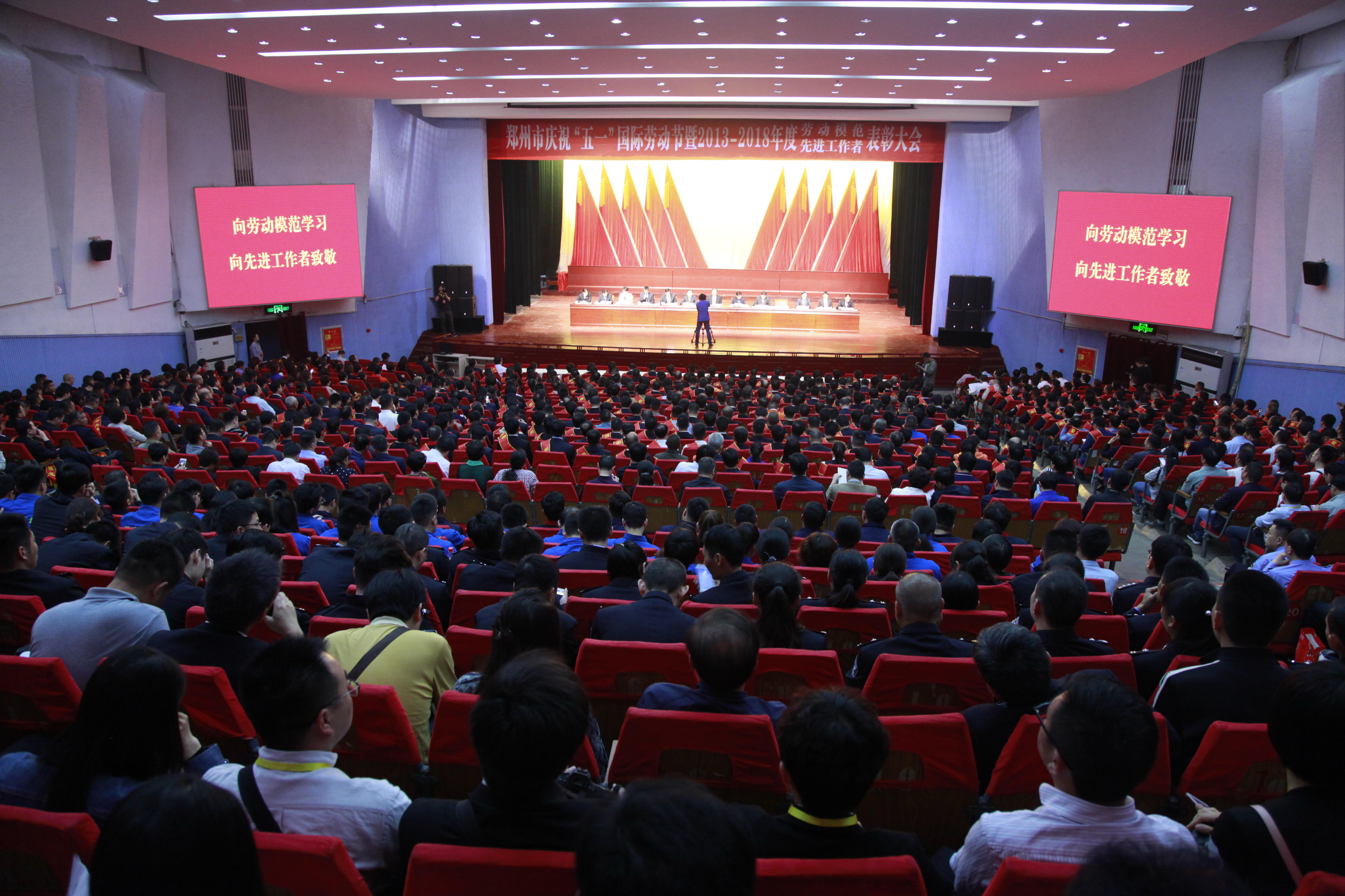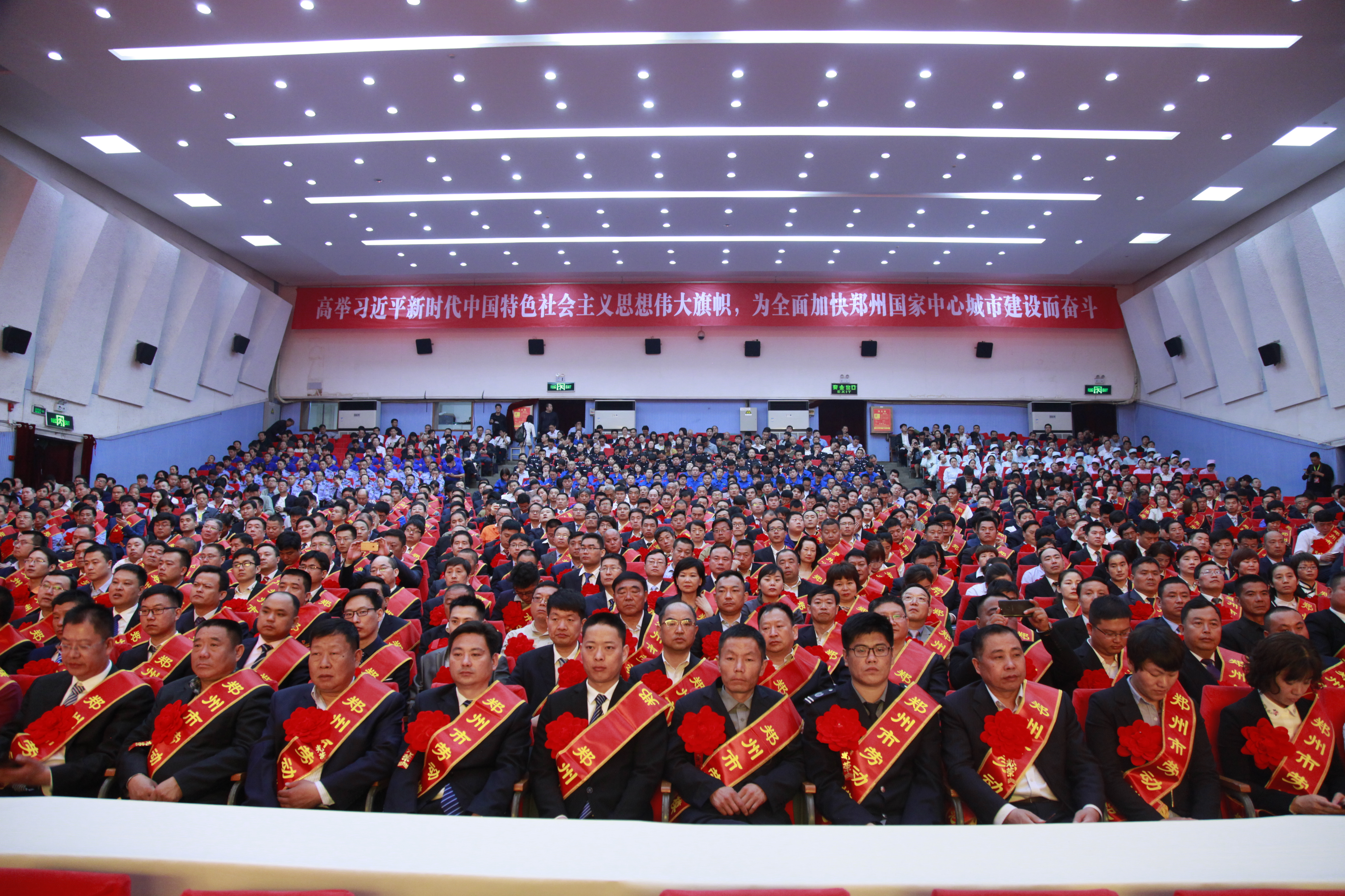4月28日上午,郑州市庆祝“五一”国际劳动节暨2013-2018年度劳动模范(先进工作者)表彰大会隆重召开,585名来自全市各行各业、各条战线,为郑州经济社会发展作出突出贡献的劳动模范和先进工作者受到表彰。大会号召全市上下弘扬劳动光荣、知识崇高、人才宝贵、创造伟大的时代新风,以劳模为榜样,爱岗敬业、恪尽职守,扎实工作、无私奉献,积极投身到郑州建设国家中心城市的新征程中。