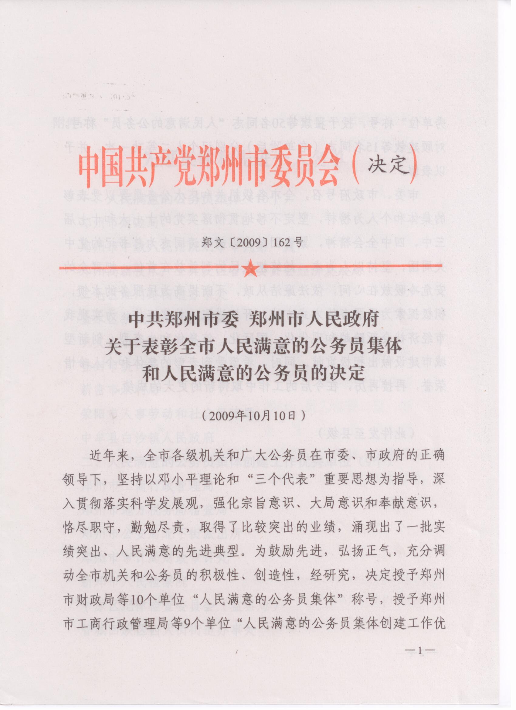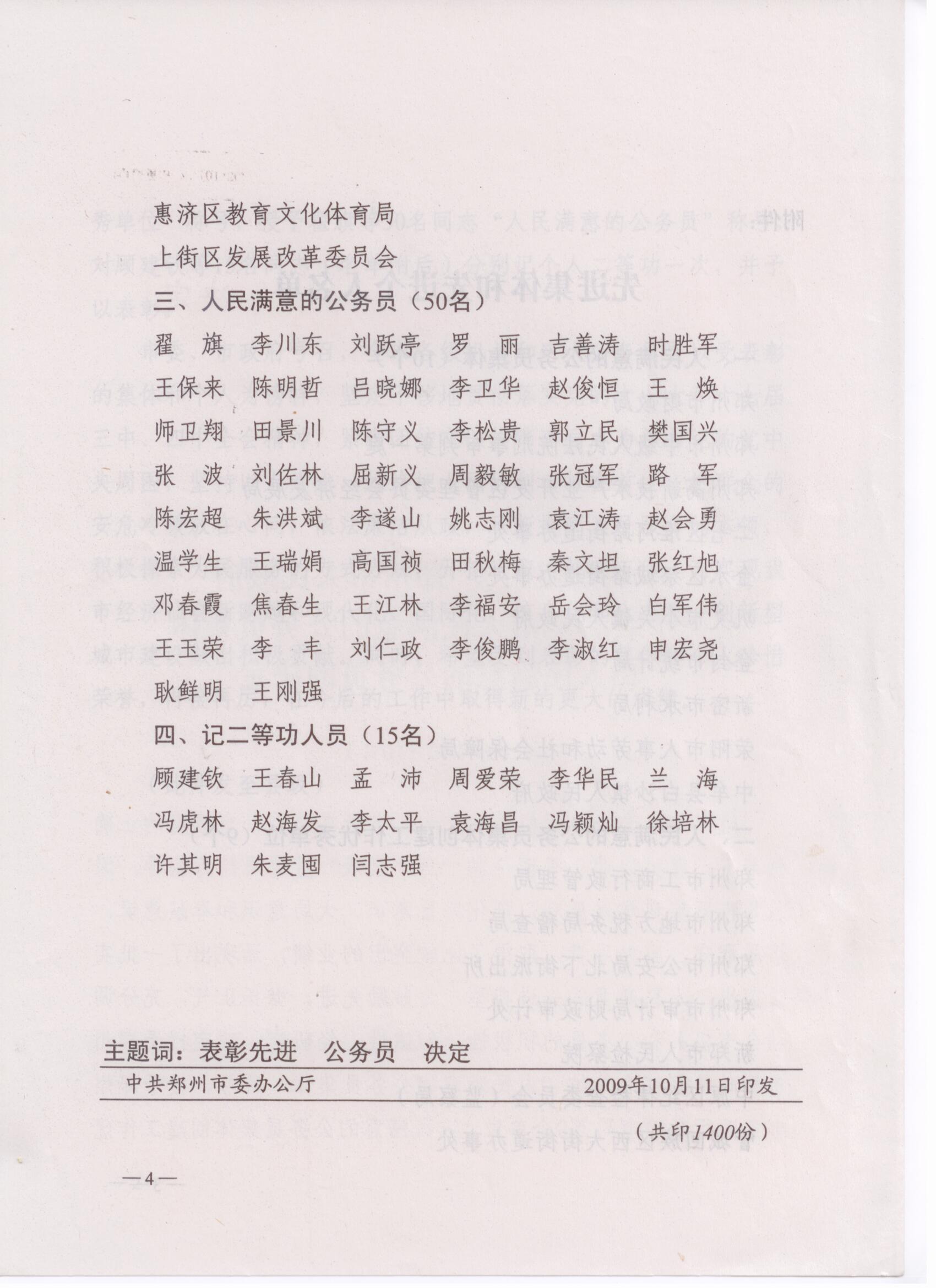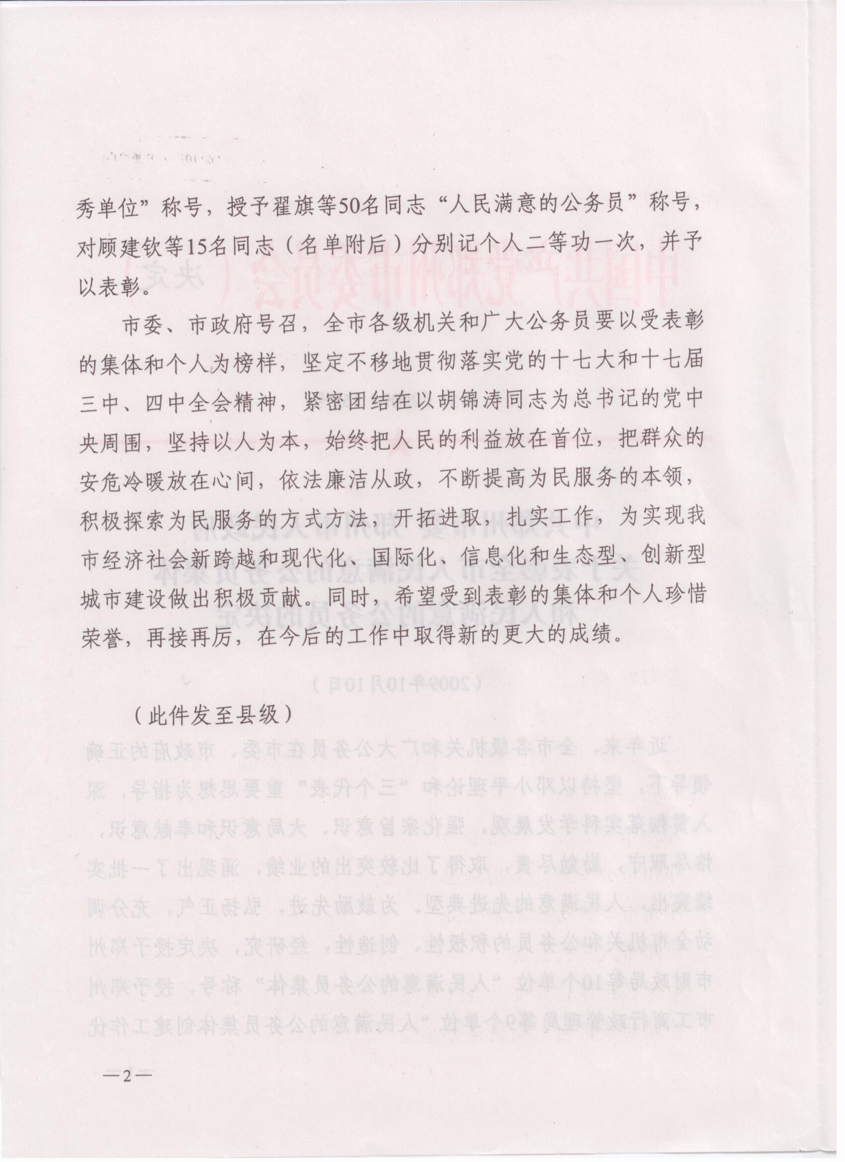 关于表彰全市人民满意公务员集体和人民满意公务员的决定(第二届)